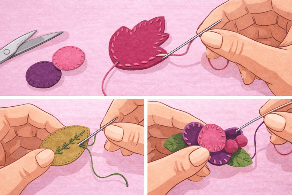 كيف نصنع بروش ومشبك شعر من اللباد؟