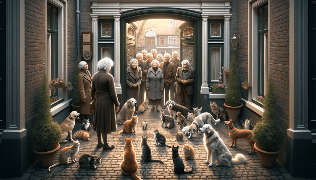 عندما وصلوا داره وجدوا باب الفناء مفتوح وكثير من القطط والكلاب تجد الكثير من الطعام والماء ، وقد تآلفت جميعها ، طرقو الباب لتفتح لهم سيدة كبيرة في العمر ، فسئلوها عن صاحب البيت ، قالت أنا صاحبة البيت ، دهشوا فسئلوها أنتِ من تقوم بكل هذا العمل ؟