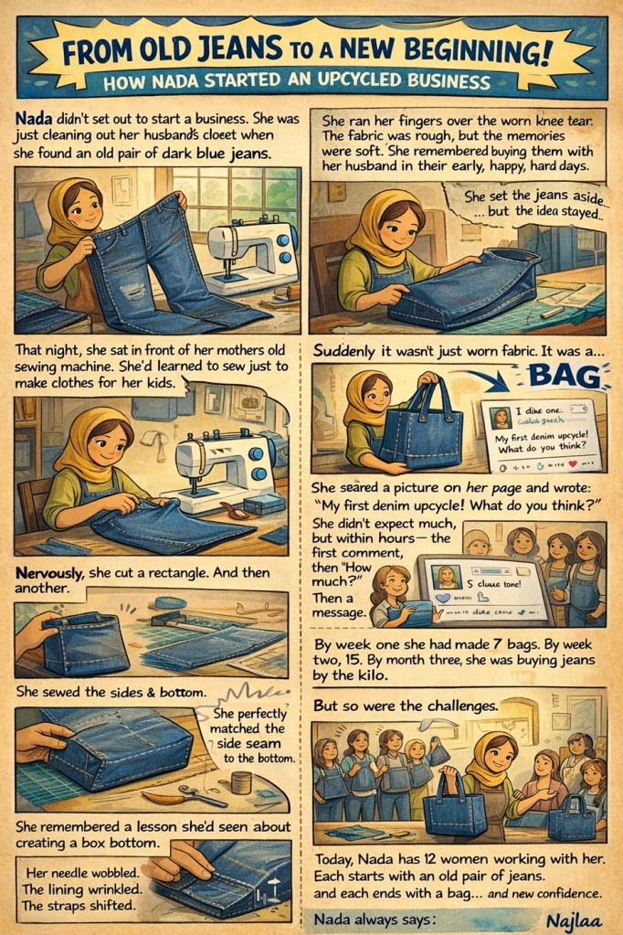 كل واحدة تبدأ بقطعة جينز قديمة.