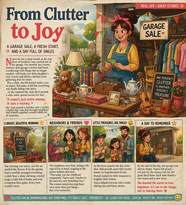 كان هناك شعور بالدفء والرضا، شعور بأن كل ما تبقى في المرآب لم يكن مجرد أغراضًا بلا قيمة، بل كان بداية يوم مليء بالمرح والفائدة.