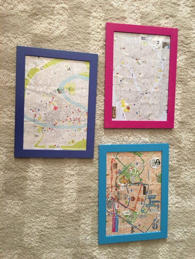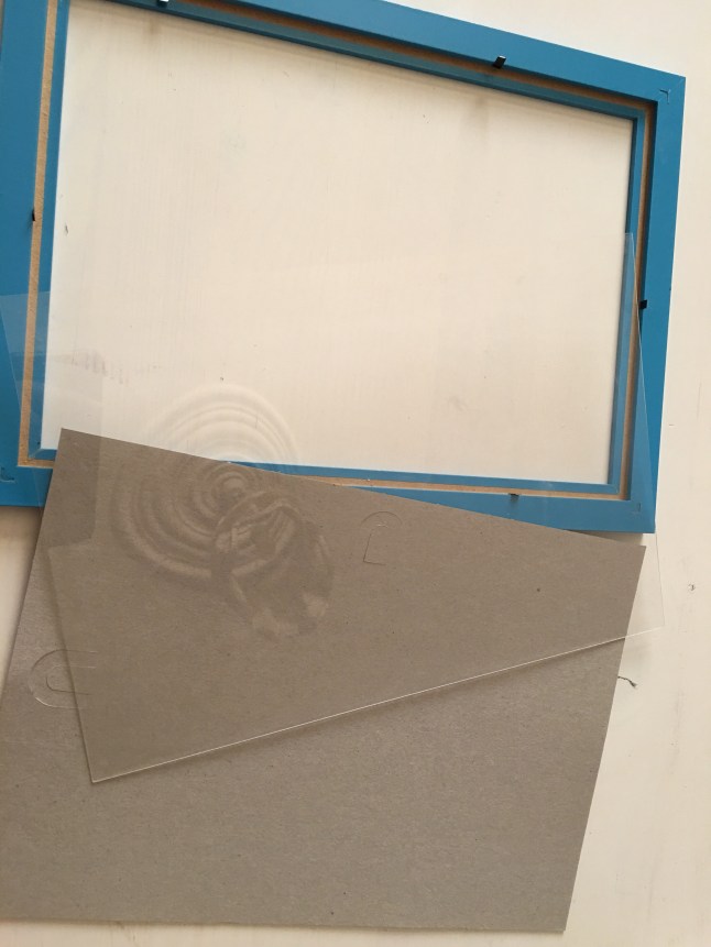 قصي ثم ضعي الخريطة على اللوح البلاستك او الزجاجي ثم ضعيه في الاطار